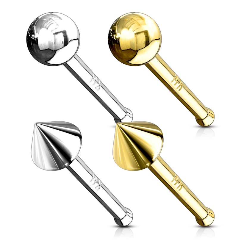 Naam: 14 karaats gouden neusstaafje met een balletje of spike