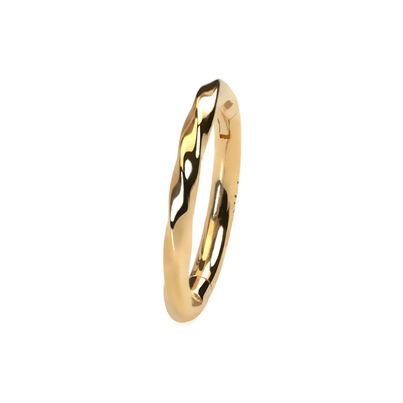 Deze prachtige scharnierring is gemaakt van 14k goud. Het ontwerp bestaat uit een subtiele draai, waardoor dit tijdloze sieraad een interessante textuur heeft. Het is perfect om te dragen in verschillende oor piercings, zoals de oorlel, helix, tragus, daith en rook. Het is een tijdloos sieraad dat elke dag gedragen kan worden. De scharnieropening zorgt ervoor dat het makkelijk is om in te doen, en comfortabel om te dragen.