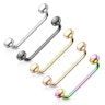 Dit type piercings, en nog veel andere, zijn enkele mogelijk door het soort sieraden dat je op de foto ziet. Deze surface barbell zal je piercing sieren met de twee vlakke plaatjes op de uiteinden. Dit sieraad is beschikbaar in diverse varianten: van de "petrol" versie over de multicolor tot zelfs de gouden versie. De keuze is helemaal aan jou!