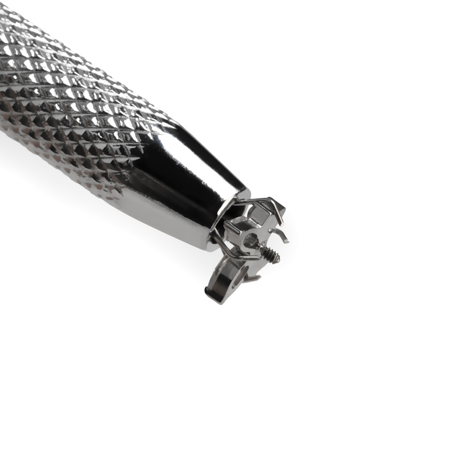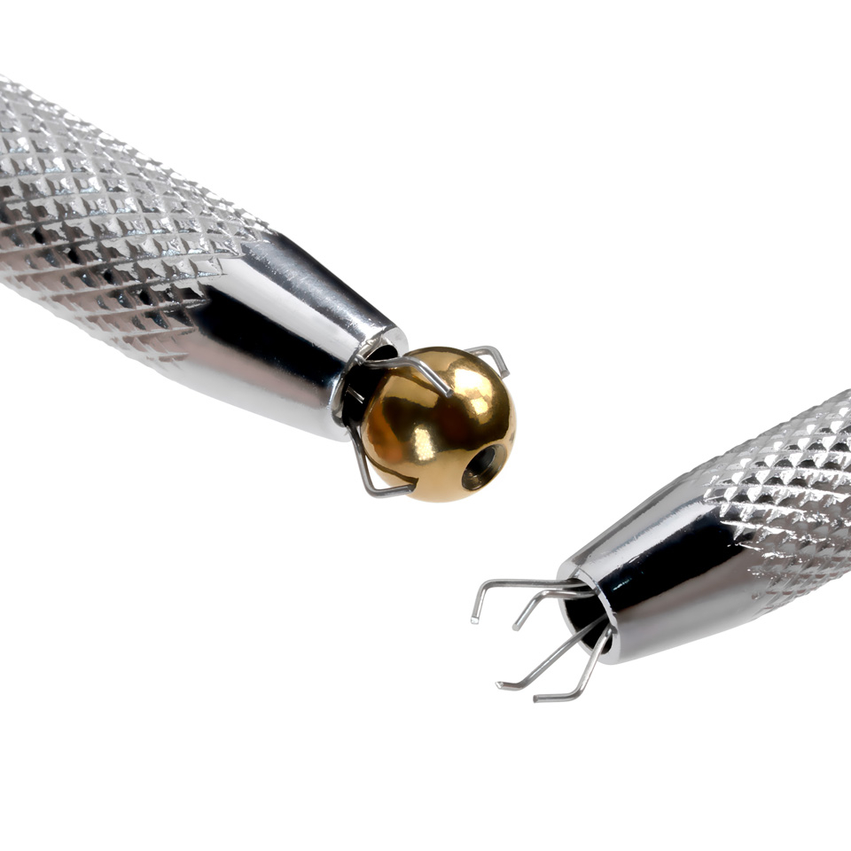 De tang heeft vier kleine grijparmen, die heel makkelijk open gaan als het kleine knopje aan het einde van de tang indrukt, en balletjes van 3 tot 6 mm vasthoudt terwijl je ze op je barbell, ring of labret staafje draait. Je moet er wel op letten dat het balletje de juiste richting opgedraaid zit, zodat hij ook echt op de staaf of ring gedraaid kan worden.