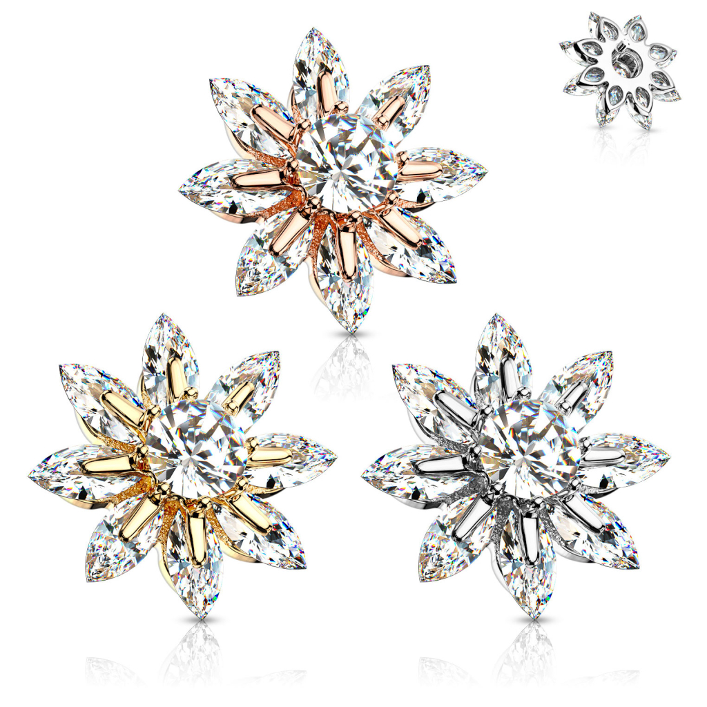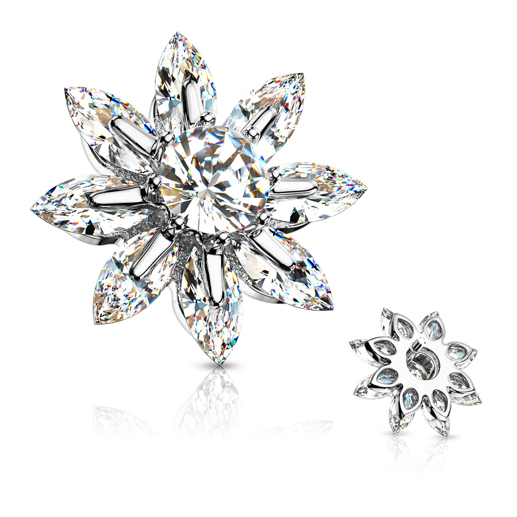 Dermal anchor met bloem met blaadjes uit steentjes en middensteen