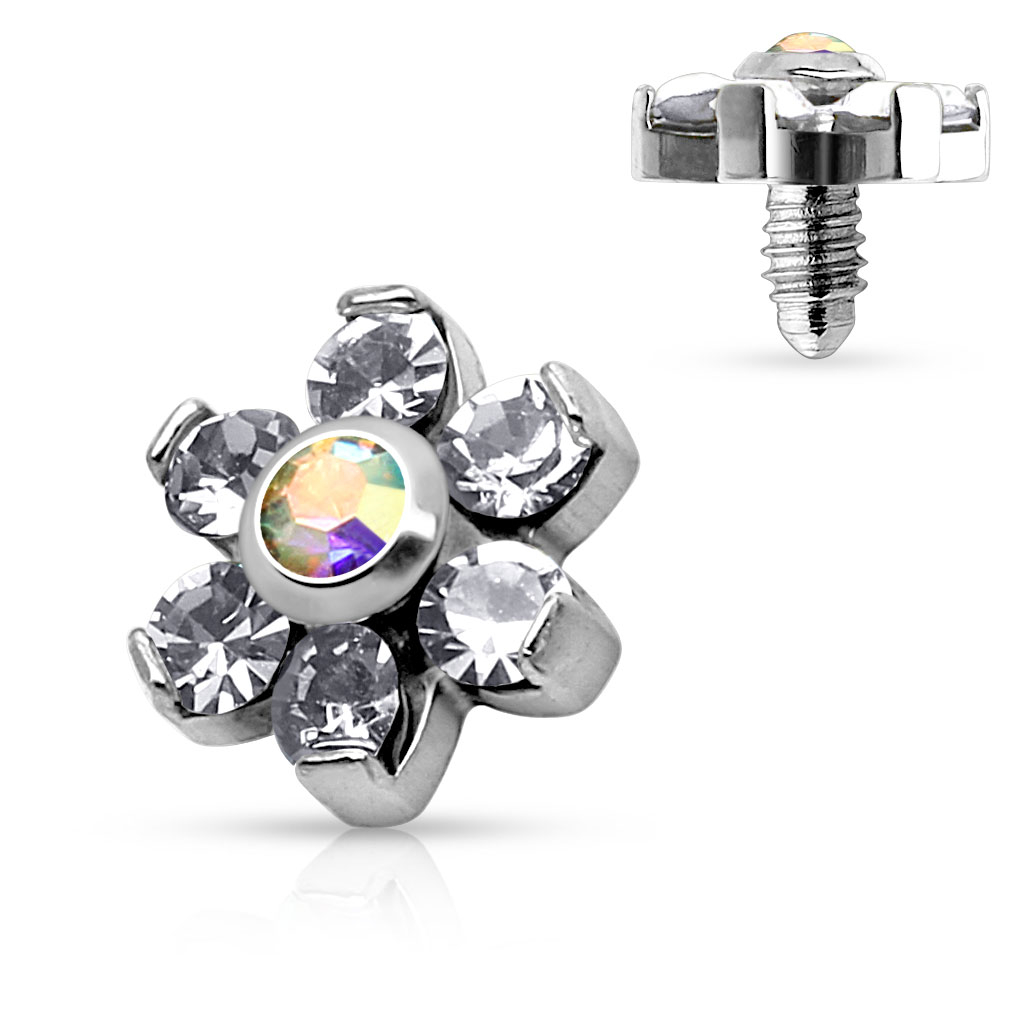 Naam: Dermal anchor met een bloem gevormd uit steentjes