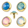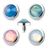 Een dermal anchor piercing is gemaakt om simpel em mooi te zijn, en dut mooie sieraad voldoet ook helemaal aan die beschrijving. Hier ontvang je namelijk een dermal anchor van zuiver chirurgisch staal, en dit sieraad is zowel glanzend, mooi, robuust en sterk op de klassieke, tijdloze manier. Je hebt nu ook de mogelijkheid om te dit sieraad in goudkleurige versie te kopen, die een wat meer elegante look heeft dan het glanzende model. Deze dermal is bovendien ook nog uitgerust met een mooie opalietsteen die de kleine top op de mooiste manier versierd.