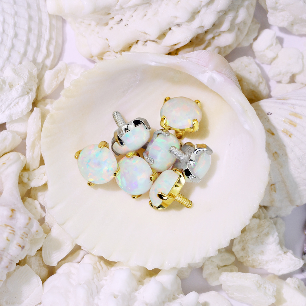 Hier is precies de juiste dermal anchor piercing voor de kieskeurige en kwaliteitsbewuste vrouw die geen compromis wilt sluiten op het ontwerp of op de kwaliteit. Deze dermal is zowel mooi als eenvoudig met zijn stijlvolle en tijdloze ontwerp. Op de bovenkant is een eenvoudige witte opaalsteen te zien, en deze wordt op zijn plek gehouden met behulp van vier kleine vangarmen van goud, die de mooie steen goed en veilig op zijn plek houden.