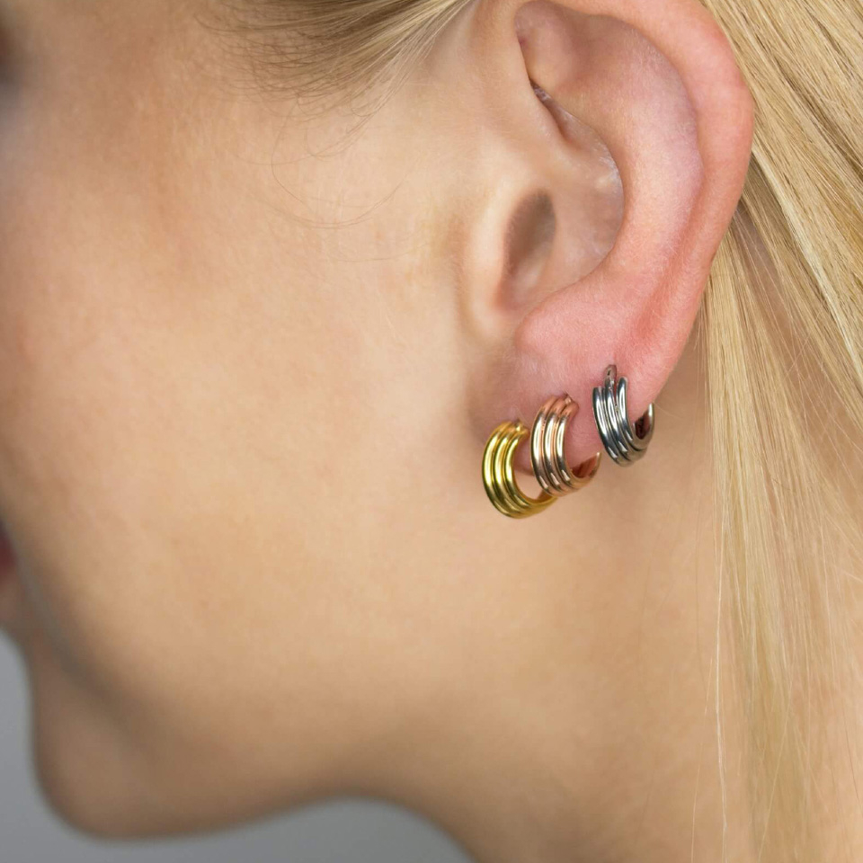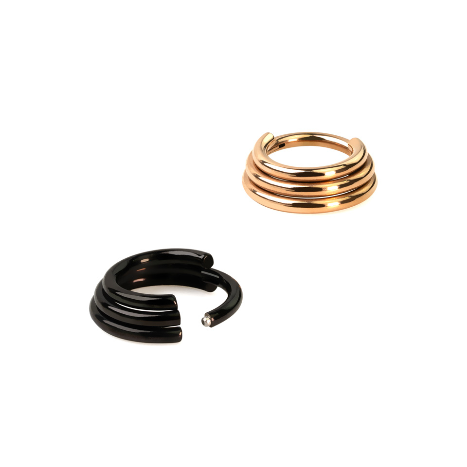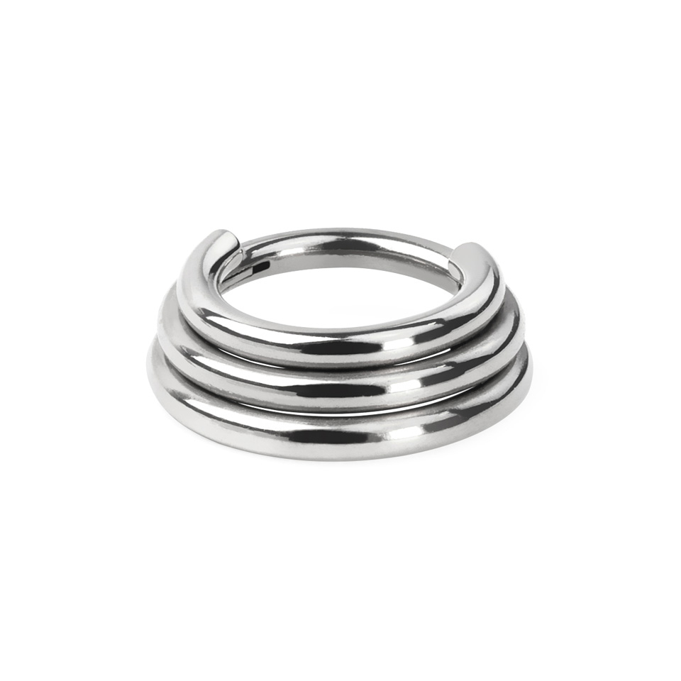 Deze eenvoudige maar toch doeltreffende trio heeft mijn hart veroverd. Het ziet er echt uit als drie afzonderlijke ringen, en dat met slechts ƩƩn oorlel! Te combineren met elke andere sieraden. Door de bijzondere vorm passen de ringen mooi op de oorlel. Lieve Bodymod-team, graag ook in titanium!0