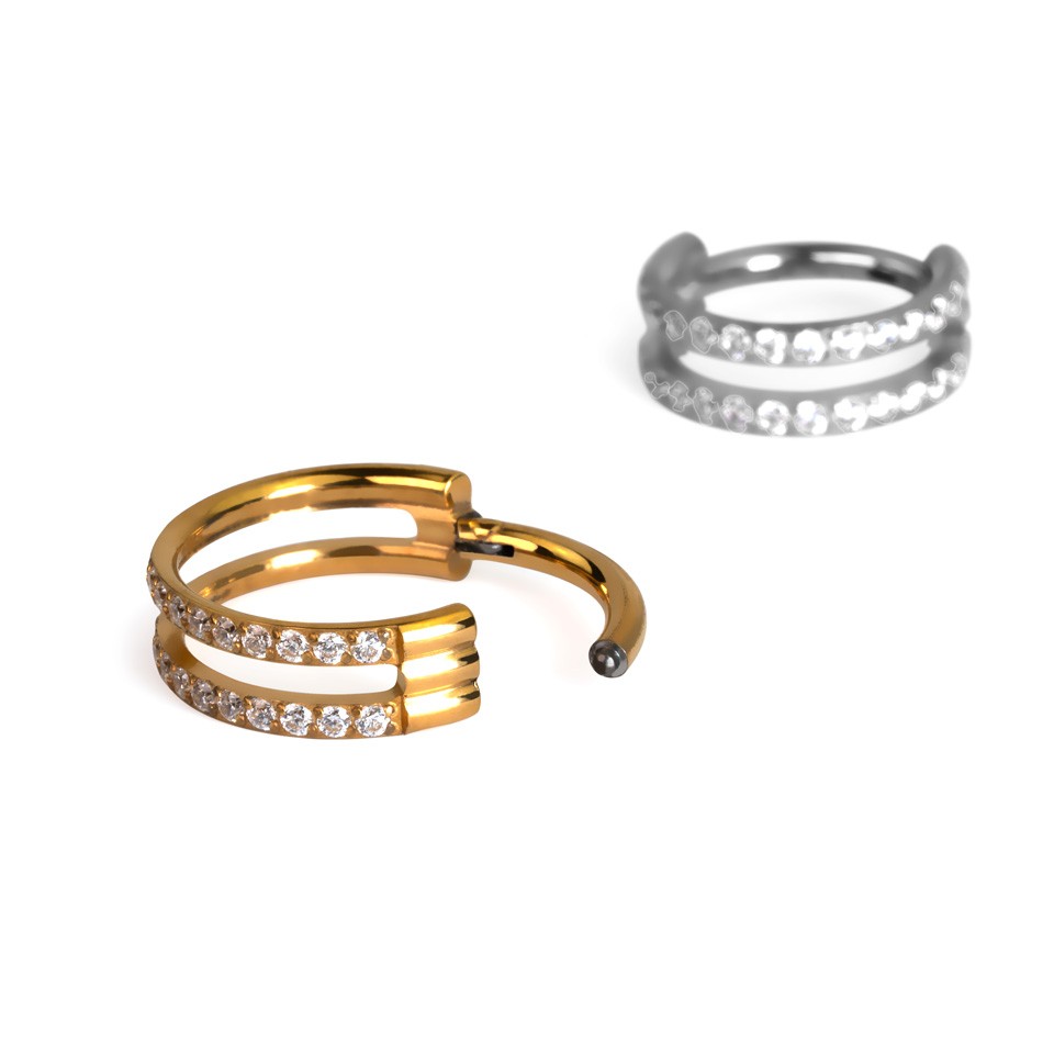 De ring heeft een scharniertje die je makkelijk opent zodat je het sieraad door je piercing kan steken. Je klikt het scharniertje dicht en hoppa, lekker makkelijk.