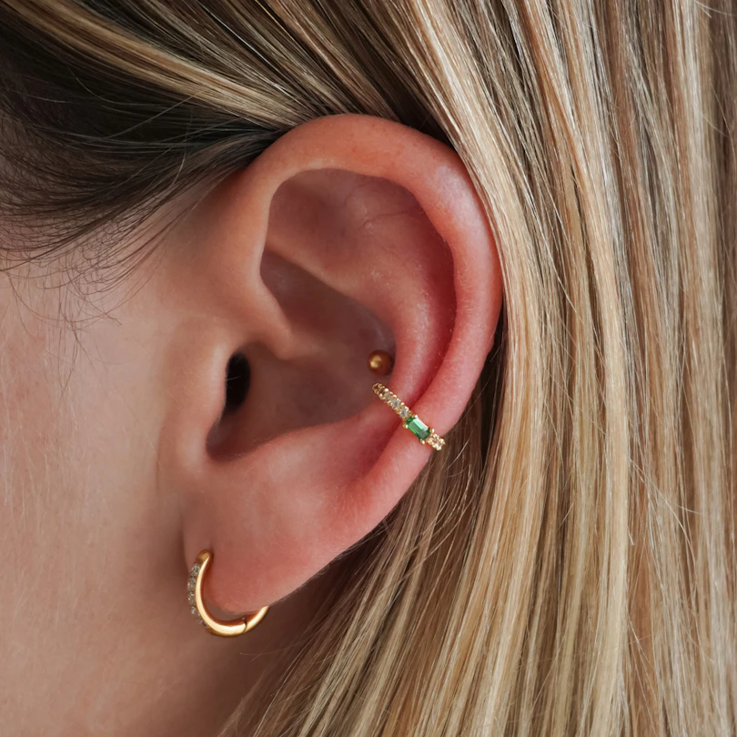 Een vleugje groen kan de hele vibe van je look veranderen. Deze earcuff heeft ƩƩn groen steentje dat kleur toevoegt zonder te overheersen ā een makkelijke manier om je look af te maken met iets onverwachts.