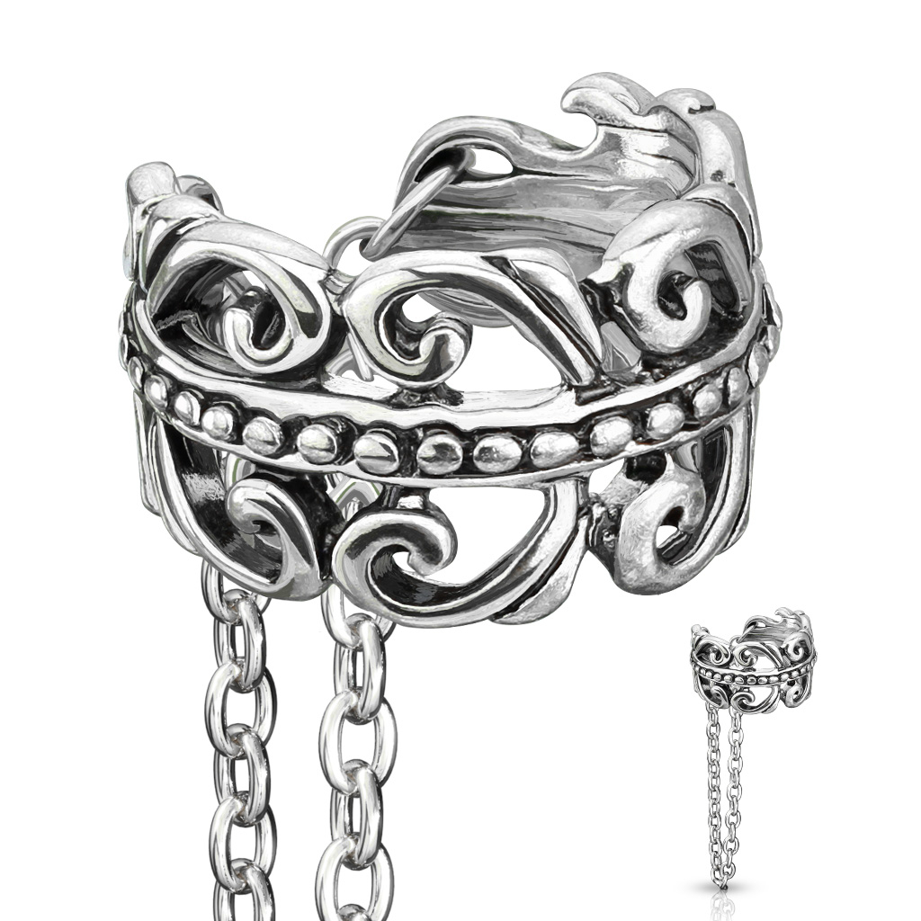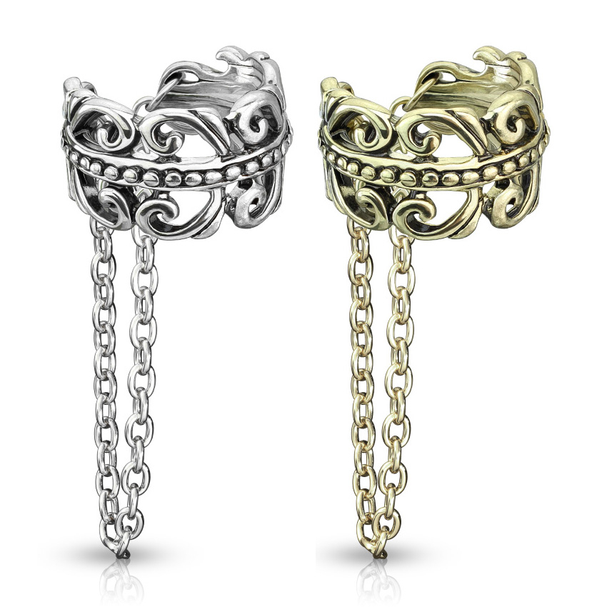Voor op het sieraad hangt een ketting, welke circa 30 mm lang is. Deze ketting verbindt het sieraad en voegt een mooi detail toe. De ketting hangt naar beneden langs je oor rand wanneer je het sieraad draagt, zodat het echt een speelse look geeft.