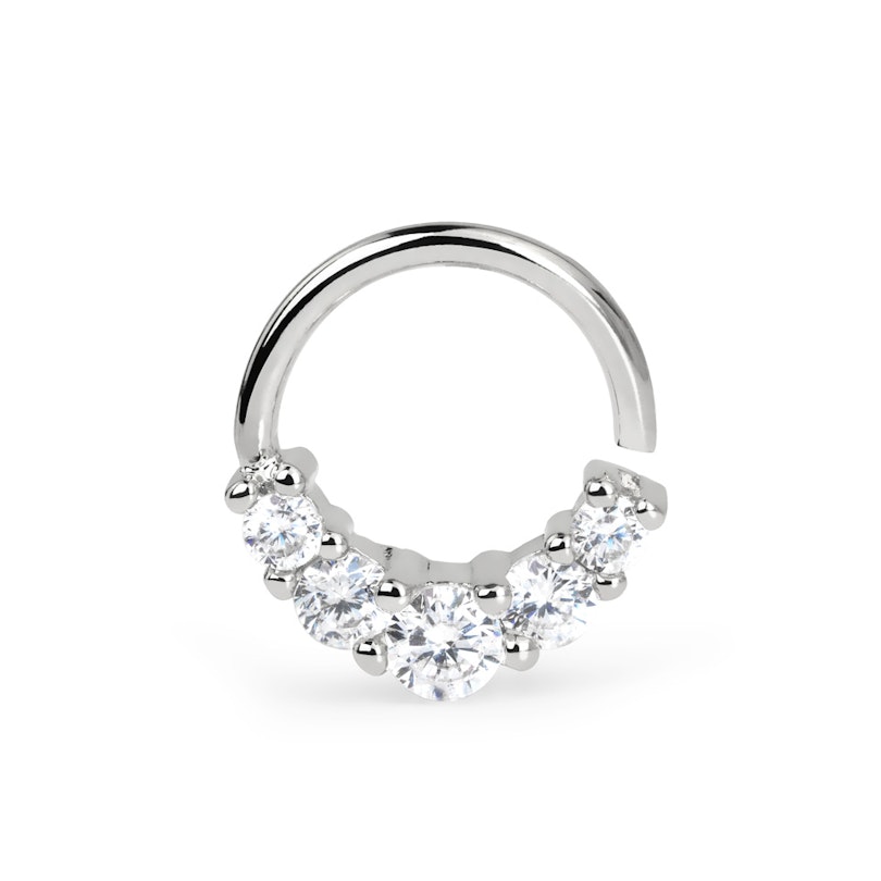 De ring kan in verschillende piercings worden gebruikt. In feite is het alleen uw verbeelding en natuurlijk de vorm en afmetingen van het sieraad die de grenzen bepalen. Gebruik het bijvoorbeeld in een septum, daith of in een andere piercing waar de kenmerken van het sieraad het toelaten. De ring heeft een inwendige diameter van 8 mm en een draaddikte van 1.2 mm.