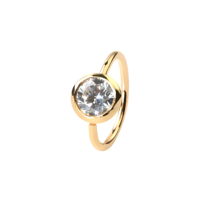 Hier zie je een super leuke en mooie ring van echt 14 karaats goud. Dit sieraad is echt iets voor jou als je van stijlvolle sieraden van goede kwaliteit houdt. De ring heeft een staafdikte van 0,8 mm en een diameter van 8 mm. Het balletje is versierd met een eenvoudige en transparante steen die ovaal is in zijn vormgeving. Het balletje zit vast op een kant van de ring, en zo hoef je dus ook niet bang te zijn dat je hem misschien kwijt raakt wanneer je het sieraad uit doet. Je opent de ringe door hem te twisten en je steekt de uiteinde van de ring (zonder steen) door het gat in de huid. Dat is super simep en makkelijk om te doen, en het balletje blijft waar het moet zitten.