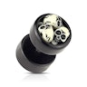 Hier hebben we een werkelijk mooie fake plug gemaakt van acryl met een 1,2 mm dikke staaf die gemaakt is van chirurgisch staal, wat de standaardmaat voor oorgaatjes die gestoken zijn met een piercingnaald is. De plug is werkelijk natuurgetrouw nagemaakt en is erg bijzonder door de 3D doodskop op de voorkant.