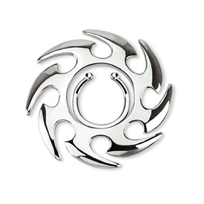 Dit is dƩ kans om een fantastisch fake tepelschild te kopen met tribalmotief en versierd met een spiraal. Dit tepelschild heeft de vorm van een mooie tribal waar vlammen uitstralen in alle richtingen zodat het lijkt alsof het tepelschild rond zichzelf draait. In het midden van het sieraad zit een klein ringetje dat je rond je tepel kunt plaatsen en waar je zacht op kan drukken zodat het op zijn plek blijft zitten.
