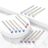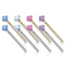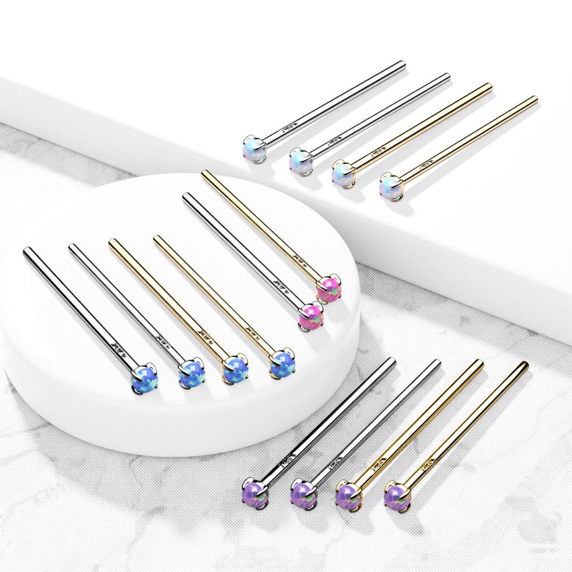 Aan het einde van de staaf zit een kleine synthetische opalen steen. De steen zit vast met vier kleine grijpers zodat hij er niet uitvalt. De kleur keuze mogelijkheden zie je in de productafbeelding hier boven.