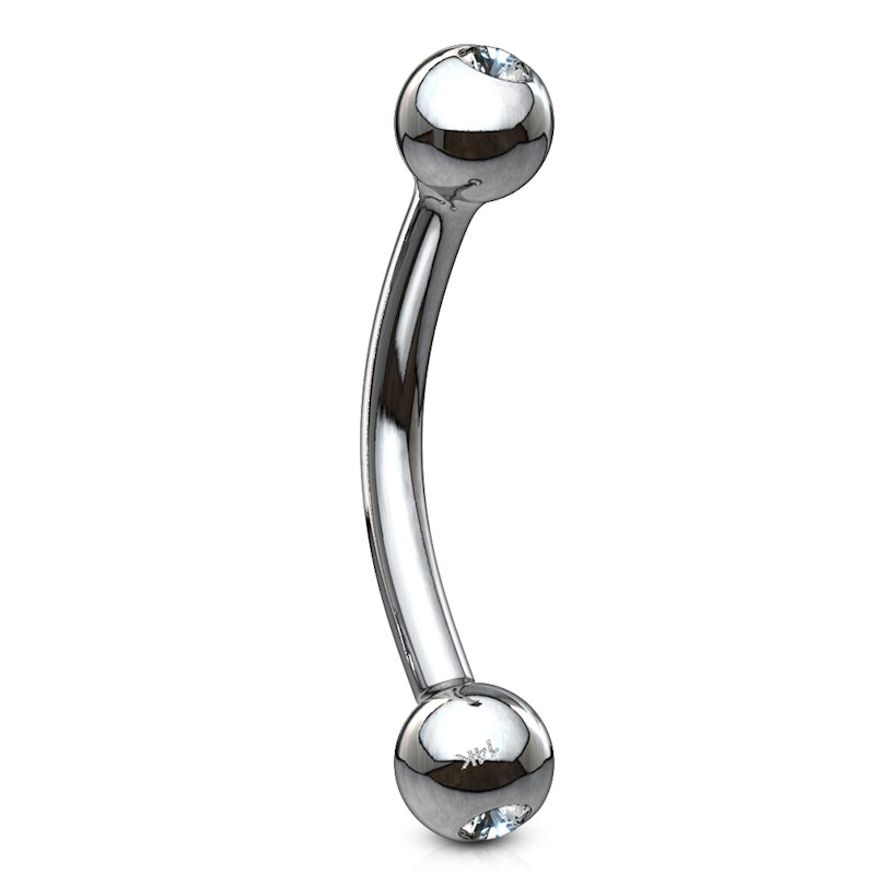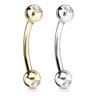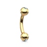 Mooie, vrouwelijke staaf van 14 karaats goud met een fonkelende heldere steen in beide balletjes. Deze piercingsstaaf is perfect voor jou wanneer je een tijdloos en klassiek design met een tikkeltje elegantie verkiest. De staaf is zo discreet en mooi, dat het bijna onschuldig werkt voor je piercing. Het enige opvallende zijn de twee glinsterende steentjes aan de uiteinden, maar verder is de piercing zeer discreet en tijdloos.
