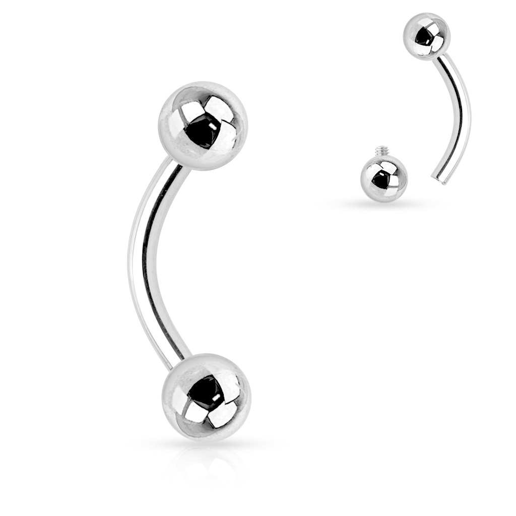 Een gebogen staaf is een beetje een all-round sieraad aangezien je het in veel verschillende piercings kunt gebruiken. Het enige dat noodzakelijk is om deze staaf te kunnen gebruiken, is dat de maten ervan overeenstemmen met de maten van de piercing die je hebt. Als je bijvoorbeeld een verticale labret hebt met een 10 mm lengte en 1,2 mm draaddikte, dan moet je natuurlijk een gebogen staaf met dezelfde maten bestellen. De grootte van de balletjes is vooral een kwestie van smaak, dus als je graag 3 mm grote balletjes wilt hebben dan bestel je dat, en als je liever 4 mm hebt dan kan dat ook.