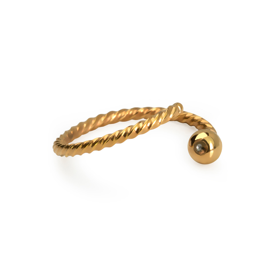 De ring is niet zoals je deze normaal ziet - helemaal glad. Aan een kant is de ring gedraaid, zodat het hetzelfde ontwerp heeft als een touw. Het geeft een totaal andere look tijdens het dragen van de sieraden. De randen van de wendingen zijn niet erg scherp omdat het draad niet te dik is.