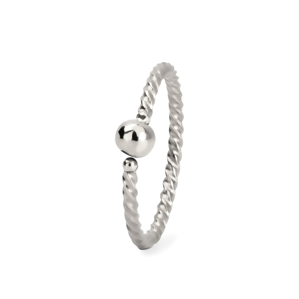 Deze ring is voorzien van een vaste bal. Je kunt de bal niet uit de ring halen zoals normaal. Het voordeel is dat je de bal niet in de afvoer van de gootsteen kunt laten vallen wanneer je de sieraden in of uit doet. Het plaatsen van sieraden met een vaste bal is veel eenvoudiger dan bij gewone ringen met bal. Je 'twist' eenvoudigweg de ring om dezelfde vorm te krijgen zoals je hier rechtsboven in de productafbeelding ziet. Zodra de sieraden in het gaatje zitten, draai je de uiteinden weer terug. Kom niet aan de bal terwijl je dit doet, want er is een kans dat het balletje dan afbreekt