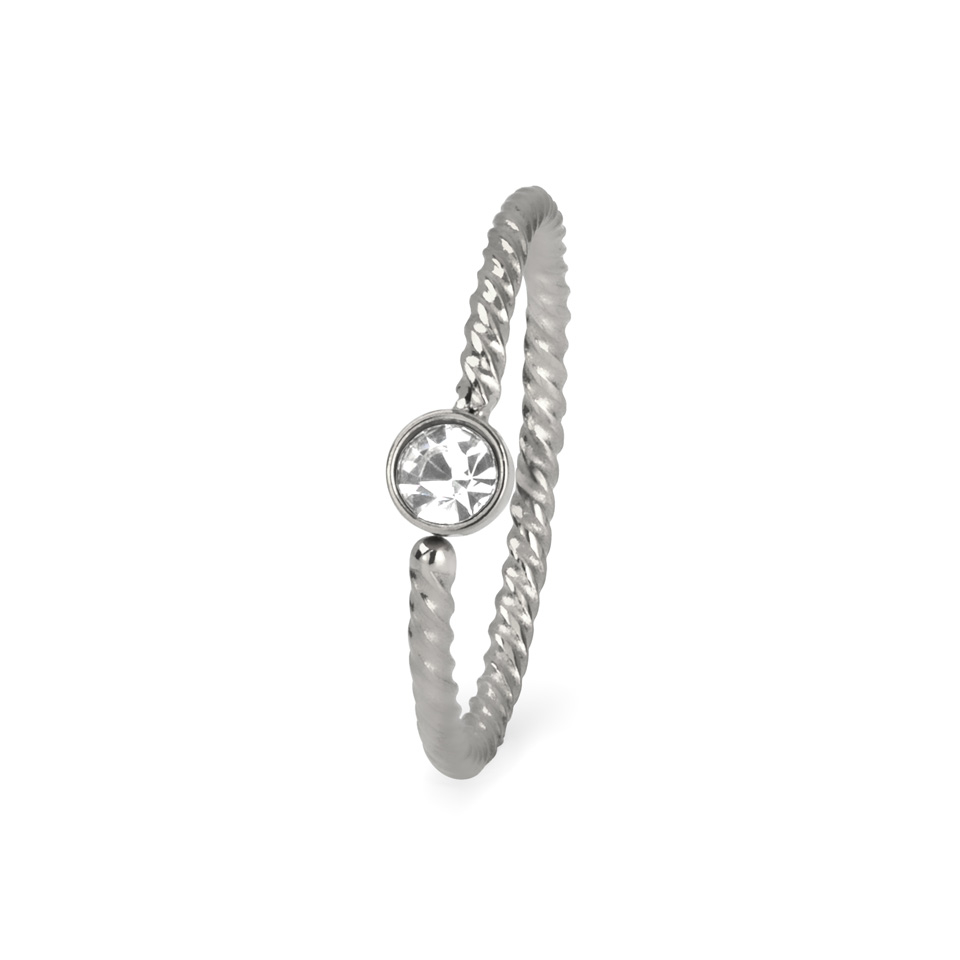 In dit geval heeft de ring een ander ontwerp dan je gewend bent. Het ontwerp is gedraaid zodat het hetzelfde effect heeft als touw. Het geeft een coole uitstraling wanneer het sieraad bijv. gedragen wordt in de neus. Je kunt kiezen uit verschillende kleuren materiaal. Alleen het glanzende model is verkrijgbaar in twee verschillende steenkleuren.