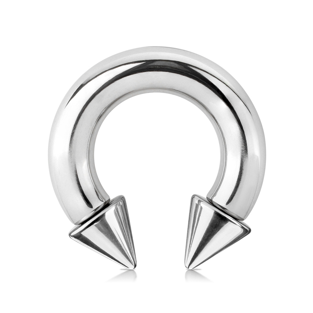 Je kunt het hoefijzer met de markante spikes in verschillende groottes bestellen en alle modellen bestaan natuurlijk uit het veilige chirurgische staal.