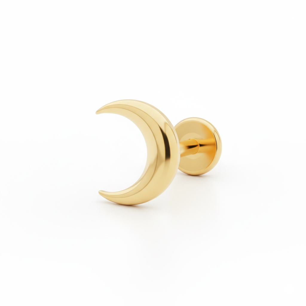 Deze halve maan labret van titanium is gemaakt voor de late avonden en vroege ochtenden, de stille momenten tussen uren waar alles persoonlijk voelt. De vorm, beschikbaar in gouden en zilveren afwerkingen, houdt je collectie minimaal en gebalanceerd.