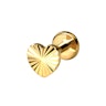 Deze charmante hartvormige labret heeft een bovenkant met een prachtige textuur, ontworpen met subtiele strepen die vanuit het centrum vloeien, waardoor ze prachtig schijnen in het licht.