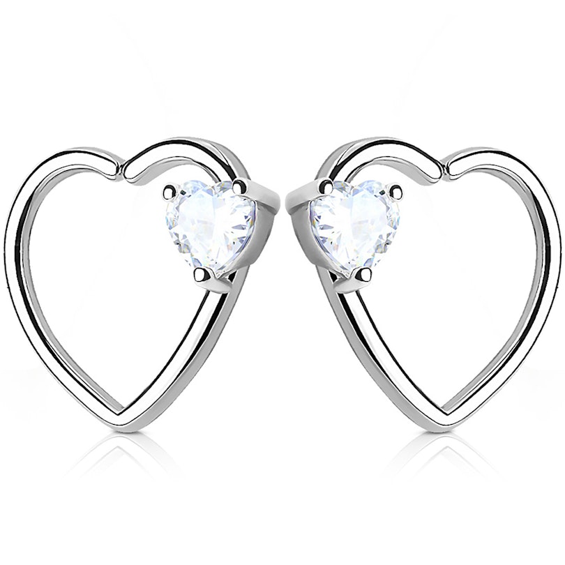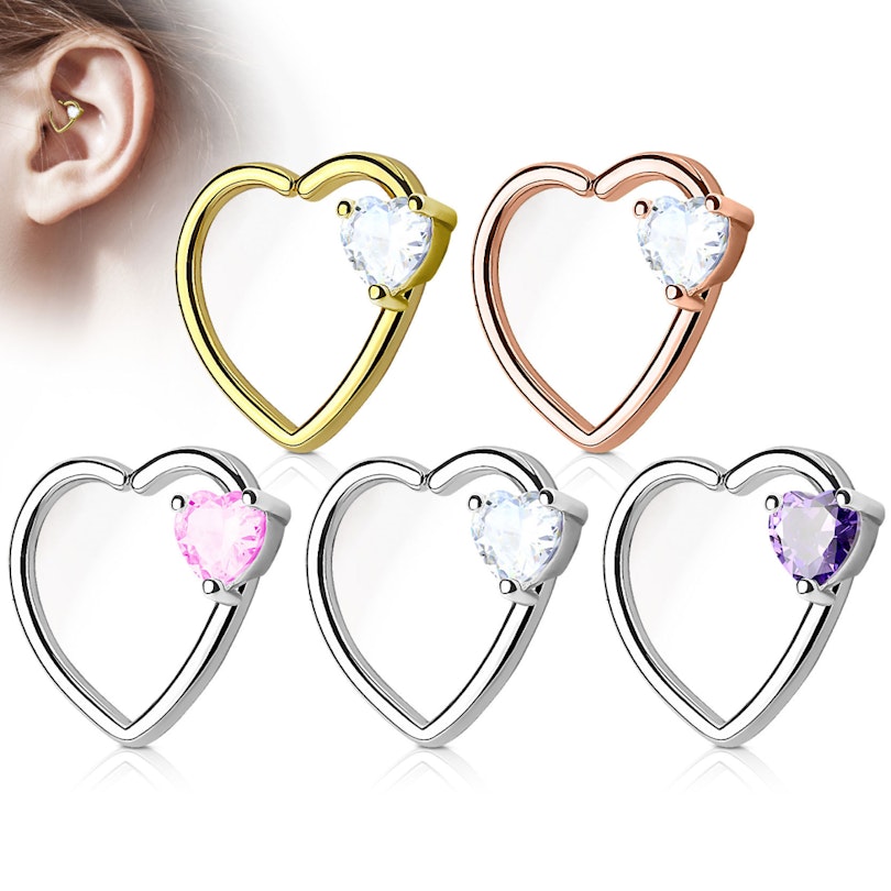 Een hart met een hart is wat je krijgt met dit piercingssieraad. Het sieraad is als een hart gevormd, waaraan nog een klein hartje van steentjes is gemonteerd. De afmetingen van de binnenkant van dit hart zijn 11 mm breed en 9 mm hoog. Het hartje is in de rechterbovenhoek gemonteerd en meet 4x4 mm. Je kunt het hartje alleen van voren bekijken.