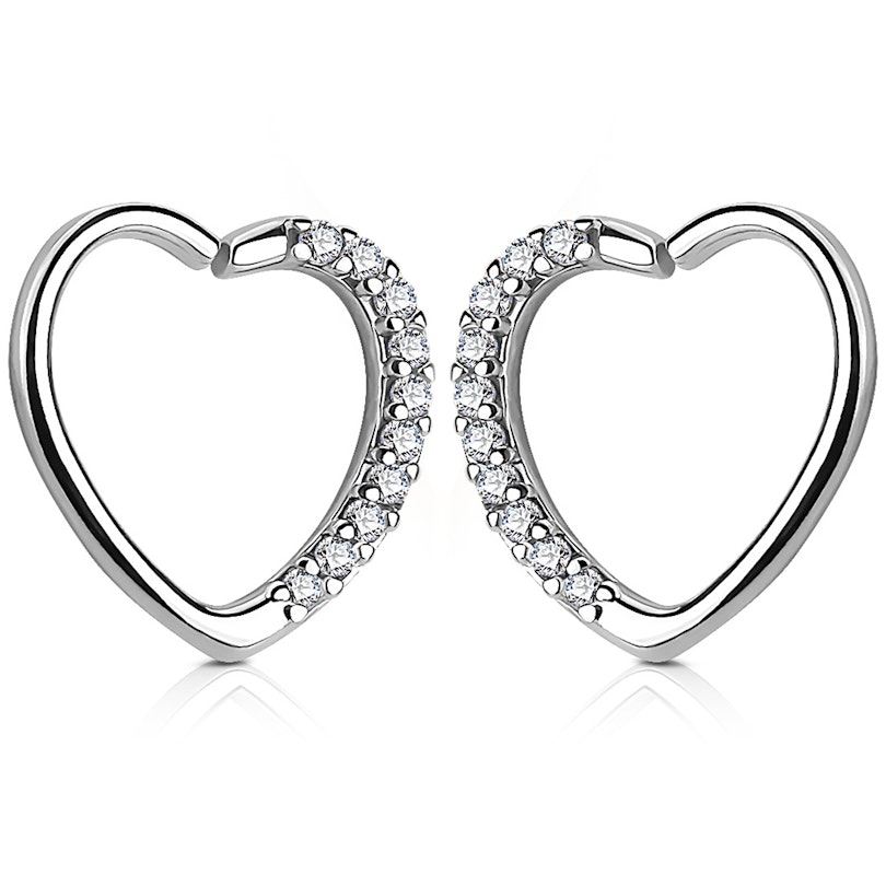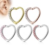 Piercingssieraden kunnen echt goed met elkaar in harmonie vallen, zoals dit sieraadstuk bewijst. Het sieraad is uit een klein stuk metaal als een hart gevormd, waarvan de uiteinden de verdieping in het midden van het hart voorstellen en lichtjes van elkaar af gebogen kunnen worden. De afmetingen van de binnenkant van dit hart zijn 9 mm breed en 9 mm hoog. Zo wordt het sieraad heel makkelijk om in te doen. Als het sieraad eenmaal in het oor zit, dan worden de uiteinden weer bij elkaar gebogen en zit het hart perfect op zijn plek.