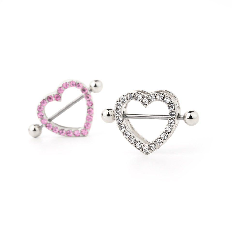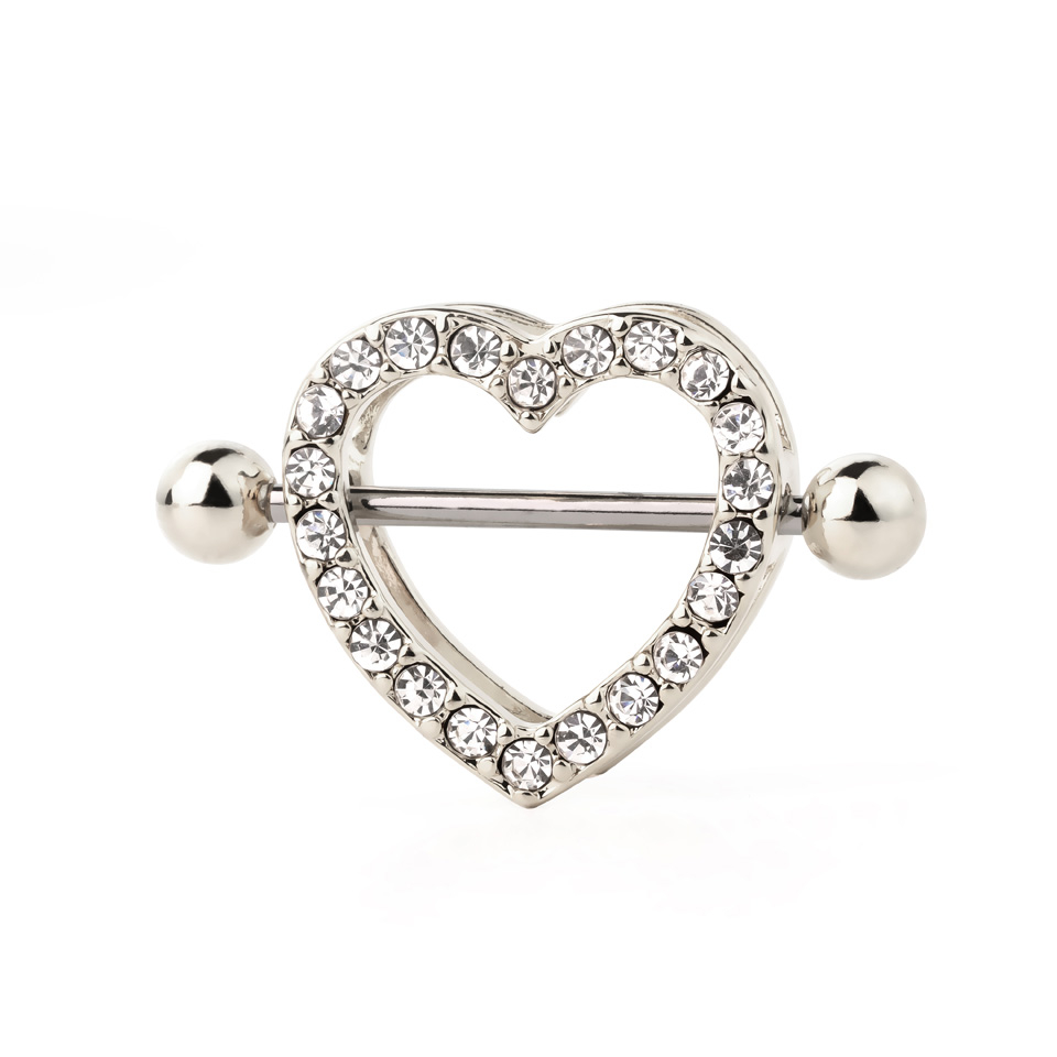 Naam: Tepelpiercing in hartjesvorm met blinkende stenen
