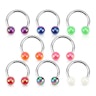 Heb je wederom een nieuw hoefijzer voor je piercing nodig en wil je dat die er niet zo saai uitziet als de meeste hoefijzers, gemaakt van chirurgisch staal met normale balletjes aan de uiteinden? Dan hebben wij hier een sieraad waarvan de balletjes door de werkelijk knallende kleuren meteen in het oog springen en zodoende iedere piercing een nieuwe en interessante look geven.