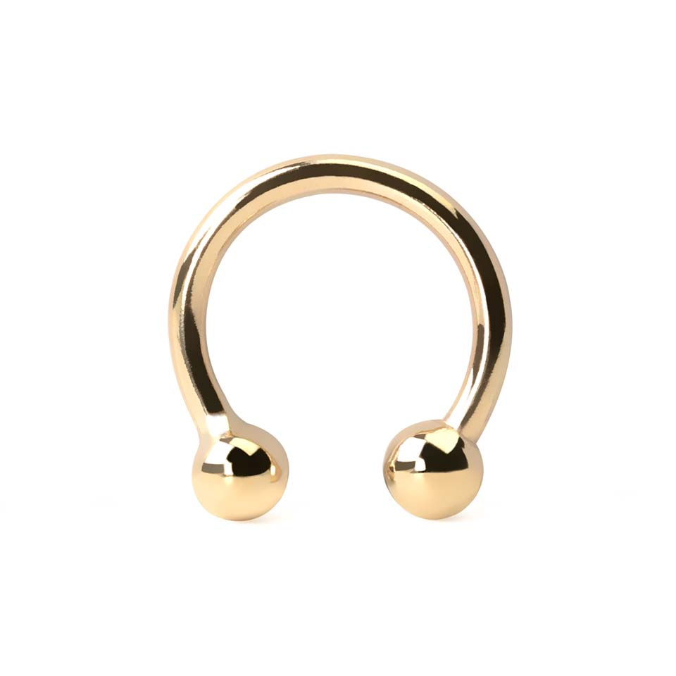 Hier hebben we een prachtig hoefijzer vervaardigd uit echt 14 karaats goud in een klassiek design, met ronde kogeltjes aan beide uiteinden. Het perfecte juweel voor iedereen die voor kwaliteit gaat, en waarde hecht aan een eenvoudige look. Hoefijzers zijn all-round sieraden, en kunnen in bijna alle piercings gedragen worden. Meestal worden hoefijzers en septumpiercings in de neus-, tepel-, wenkbrauw-, oor-, lip- of intiempiercings gedragen.