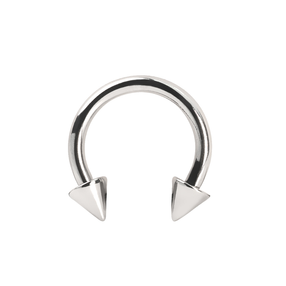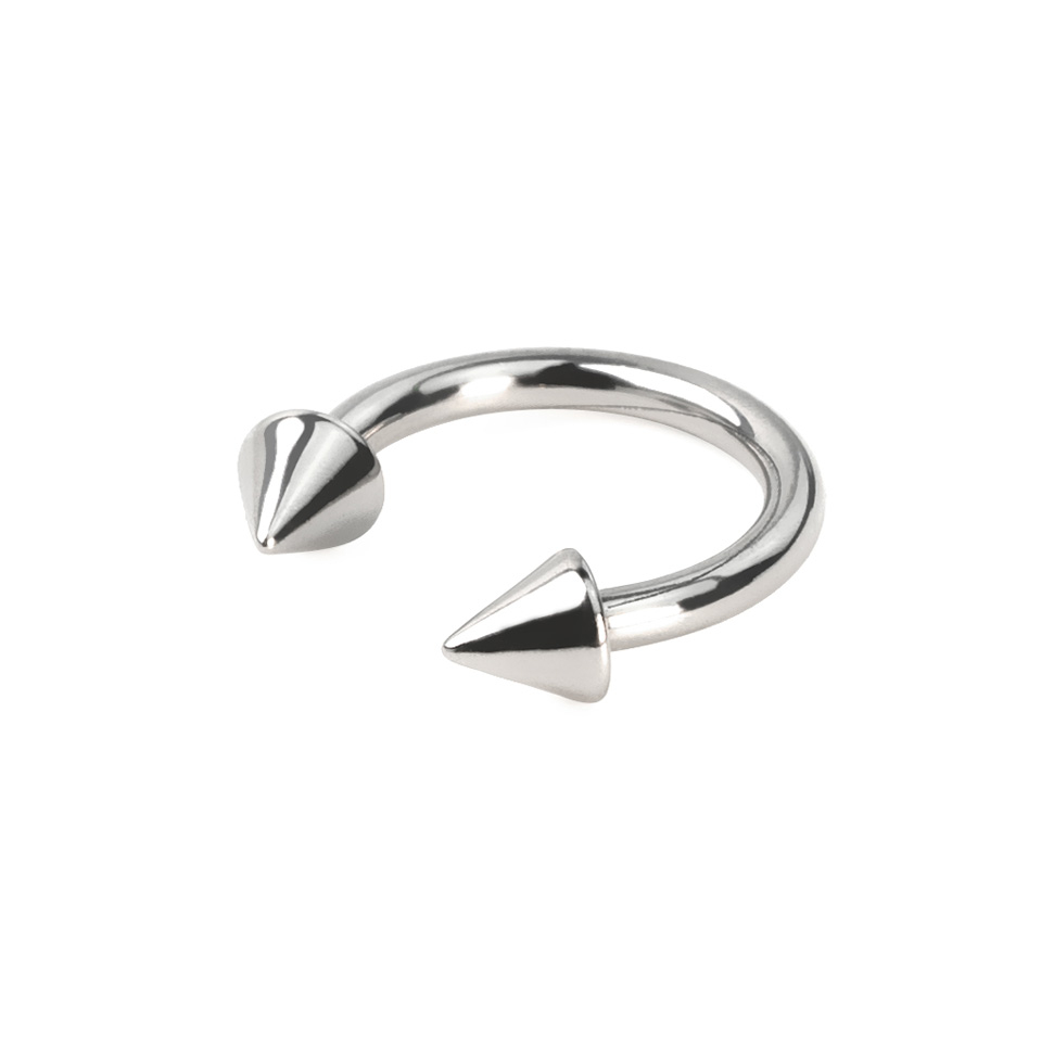 Een hoefijzer wordt ook wel "Horseshoe Barbell" genoemd en kan voor veel piercings in het lichaam gebruikt worden. Hoefijzers zijn zeer geliefd voor wenkbrauwpiercings of voor tepelpiercings. Dit model heeft in plaats van normale balletjes kleine spikes gekregen.
