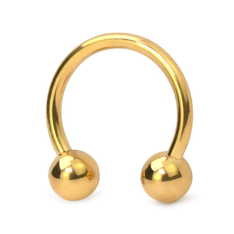 Een hoefijzer is een veelzijdig sieraad omdat het kan worden gebruikt in meerdere piercings. Het kan worden gedragen in de neus, lip, oor, tepel of wenkbrauw. Het enige dat belangrijk is dat de afmeting van het sieraad overeenkomt met de maat van je piercing. En natuurlijk vereist het ook dat de vorm van de piercing het toelaat. Het is bijv. moeilijk om een hoefijzer in een tongpiercing te plaatsen. Dit sieraad is gemaakt van gekleurd titanium, waardoor het ideaal is voor het eerste gebruik van een piercing. Er zitten geen sporen van nikkel in titanium. Maar daarom hoef je het 'saaie gewone! titanium niet te gebruiken, dat vergeleken met chirurgisch staal een beetje mat en donker is, met dit hoefijzer kun je wat kleur toevoegen. Een ander voordeel van dit sieraad is het inwendige schroefdraad, de bal moet in het staafje worden geschroefd in plaats van erbuiten, wat kans op het scheuren van je piercing aanzienlijk vermindert.