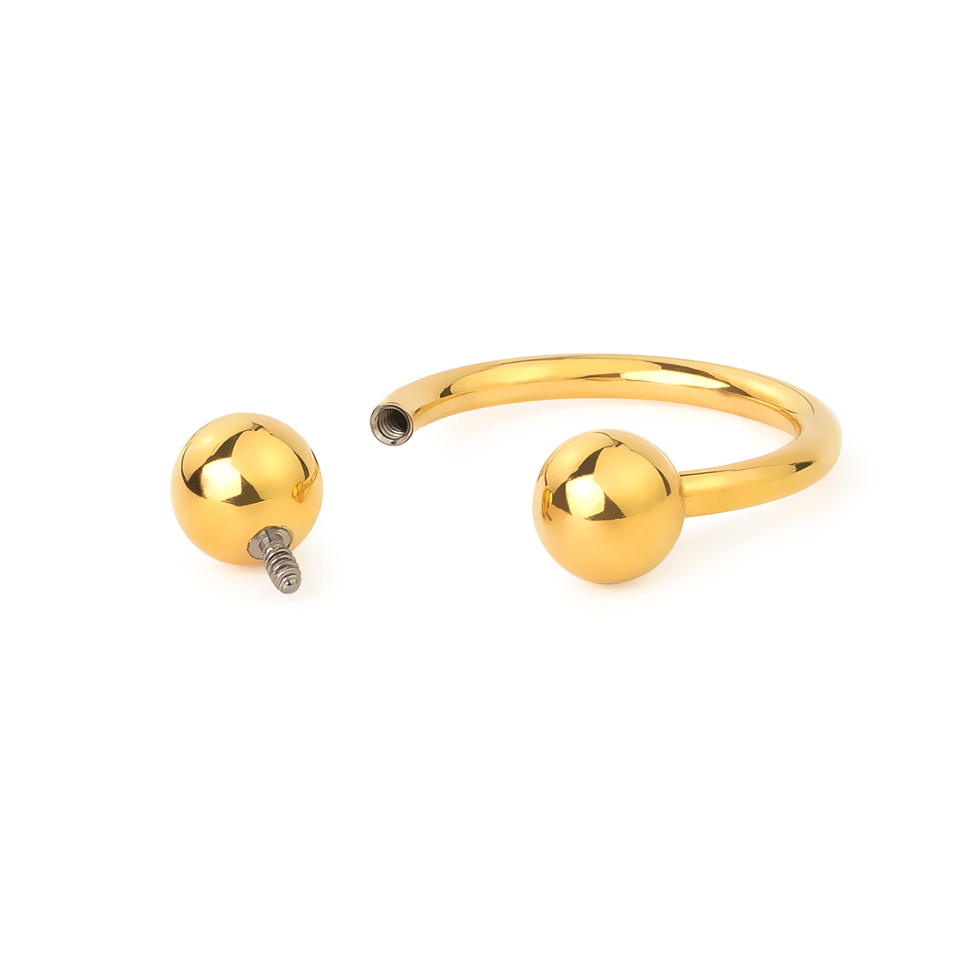 Een hoefijzer is een veelzijdig sieraad omdat het kan worden gebruikt in meerdere piercings. Het kan worden gedragen in de neus, lip, oor, tepel of wenkbrauw. Het enige dat belangrijk is dat de afmeting van het sieraad overeenkomt met de maat van je piercing. En natuurlijk vereist het ook dat de vorm van de piercing het toelaat. Het is bijv. moeilijk om een hoefijzer in een tongpiercing te plaatsen. Dit sieraad is gemaakt van gekleurd titanium, waardoor het ideaal is voor het eerste gebruik van een piercing. Er zitten geen sporen van nikkel in titanium. Maar daarom hoef je het 'saaie gewone! titanium niet te gebruiken, dat vergeleken met chirurgisch staal een beetje mat en donker is, met dit hoefijzer kun je wat kleur toevoegen. Een ander voordeel van dit sieraad is het inwendige schroefdraad, de bal moet in het staafje worden geschroefd in plaats van erbuiten, wat kans op het scheuren van je piercing aanzienlijk vermindert.