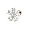 Zoals je uit de naam kan afleiden, is deze labret versierd met een mooie bloem. De bloem krijgt haar vorm door de druppelvormige heldere steentjes die schitteren en fonkelen.
