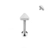 Dit model heeft een kleine driehoek. Je kiest zelf je favoriete kleur en lengte, afhankelijk van waar je het sieraad wilt dragen. Als je bijvoorbeeld je traguspiercing hebt laten zetten met een naald van 1.2 mm, zal een lengte van 6 mm waarschijnlijk goed passen. Deze labret kan je ook dragen in je helix, waar de meeste mensen een labret dragen met een lengte van 4 mm. Maar het hangt natuurlijk altijd af van je anatomie en de plaats van je piercing. In het algemeen geldt dat zolang de dikte van het staafje overeenkomt met die van je piercing, er geen grenzen zijn aan waar je deze veelzijdige labret kan gebruiken.
