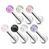 Mooie en ondeugende labret piercing van chirurgisch staal met een klein acrylballetje op de spits.