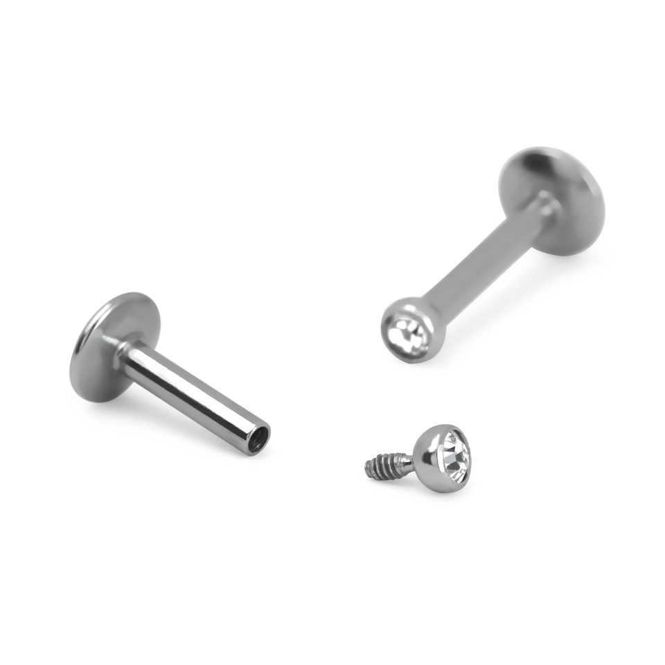 Deze labret heeft een extra praktische eigenschap, namelijk dat deze voorzien van is van een interne schroefdraad, zodat het staafje volledig door de piercing loopt en de top er dan pas opgeschroefd wordt. Hierdoor komt de huid dus helemaal niet in contact met de schroefdraad en kan niet gekrast worden.