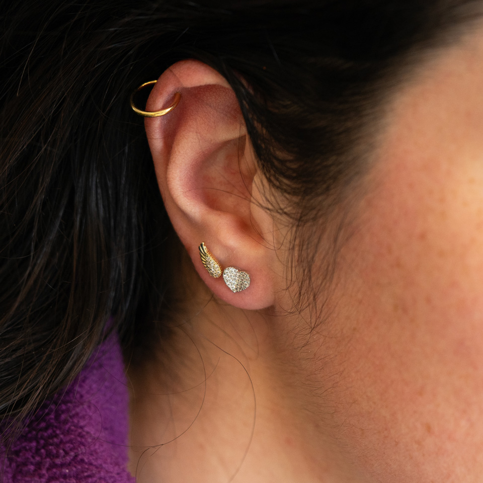 Deze labret met interne schroefdraad heeft een engelenvleugel design met heel veel steentjes en prachtige details. Het sieraad is beschikbaar in drie kleuren: goud, zilver en rosƩ goud. De gouden variant is verguld in 14k goud en de zilveren is gerhodineerd. De labret heeft een standaard draaddikte van 1.2 mm en is beschikbaar in twee lengtes: 6 mm en 8 mm. Perfect dus voor je oor- en lippiercings.