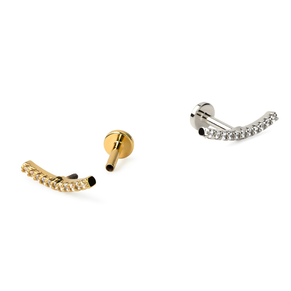 De gebogen staaf is gemaakt van messing en het deel wat door de piercing gaat is chirurgisch staal. Vervolgens zijn deze materialen gecoat met verschillende kleuren - zilver, goud, of rosƩ goud. De gebogen staaf is relatief lang met een lengte van 15 mm, waardoor dit sieraad perfect is voor je helixpiercing of als oorlelpiercing. Jij kiest waar je dit sieraad draagt maar let er goed op dat de maten overeenkomen met jouw piercing.
