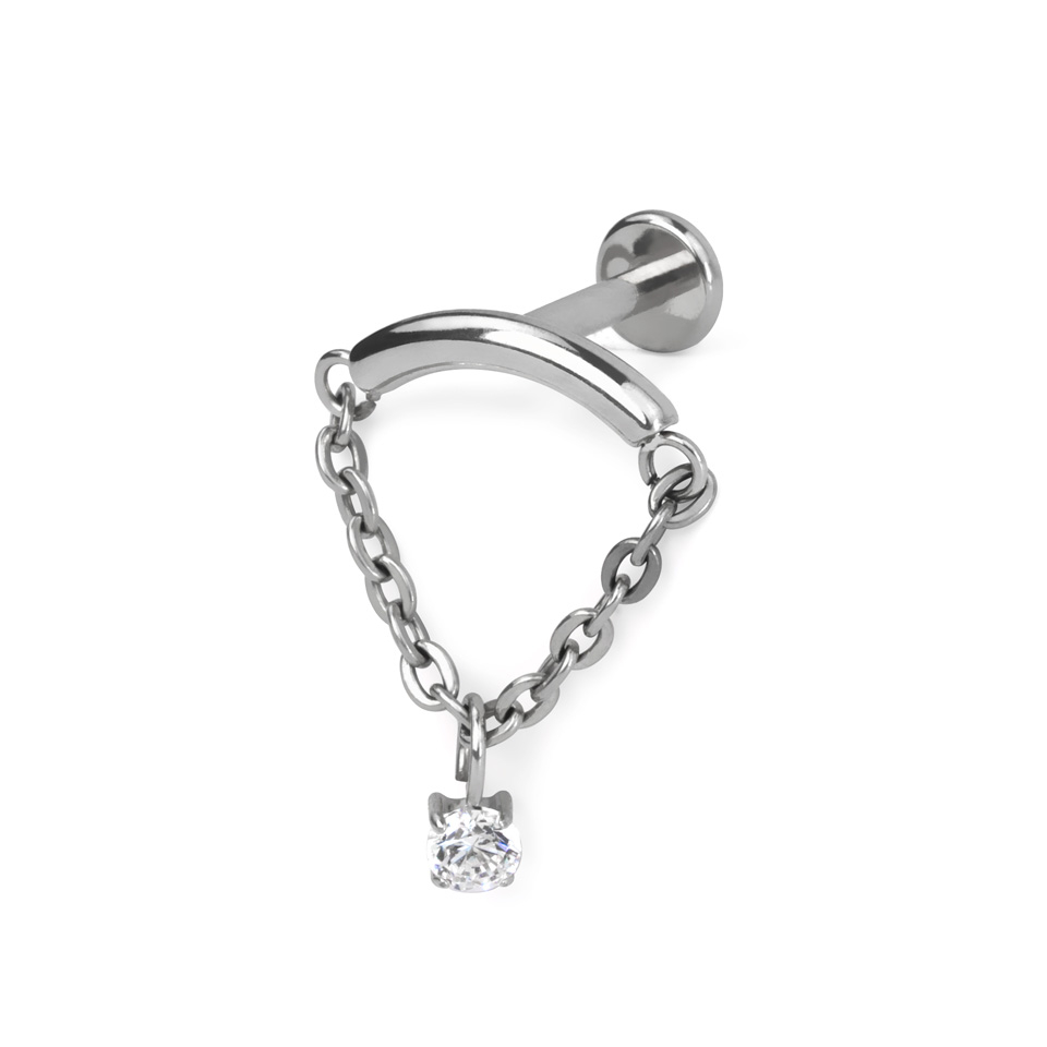 Labret met gebogen staafje, kettinkje en hangertje