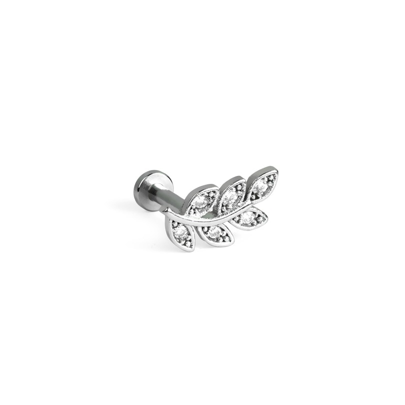 Het blad heeft de ideale vorm voor oorpiercings met het gebogen ontwerp en fonkelende zirkonia steentjes. De afmeting van het bladontwerp is 4.8 x 9.5 mm en de draaddikte is 1.2 mm. Hij is perfect voor bijvoorbeeld de helix, tragus, conch of oorlel. De labret is verkrijgbaar in twee lengtes: 6 mm en 8 mm, zodat je altijd de juiste maat voor je piercing kan vinden.