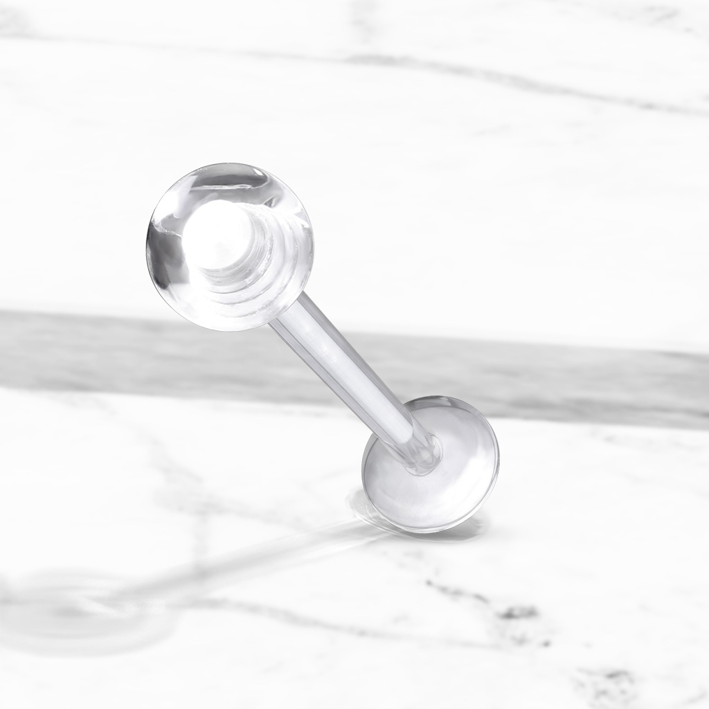 You’re now looking at a transparent labret. This piece has the ability to hide your piercing, if necessary, while preventing the hollow from closing again.