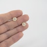 Het ontwerp aan de bovenkant is een prachtige lotusbloem uit messing. Het geheel is gecoat in verschillende kleuren naar keuze: goud, rosƩgoud, en zilver. De lotusbloem is 8 mm groot en is bezaaid met diverse kleine heldere steentjes rond de rand, en een facetgeslepen edelsteen in het midden. De edelsteen meet 3.5 mm.