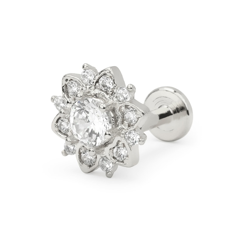 Labret met steenbezette lotusbloem en inwendig schroefdraad
