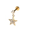 Deze labret met intern schroefdraad heeft een steentje op het bovenste balletje en een stervormig hangertje.