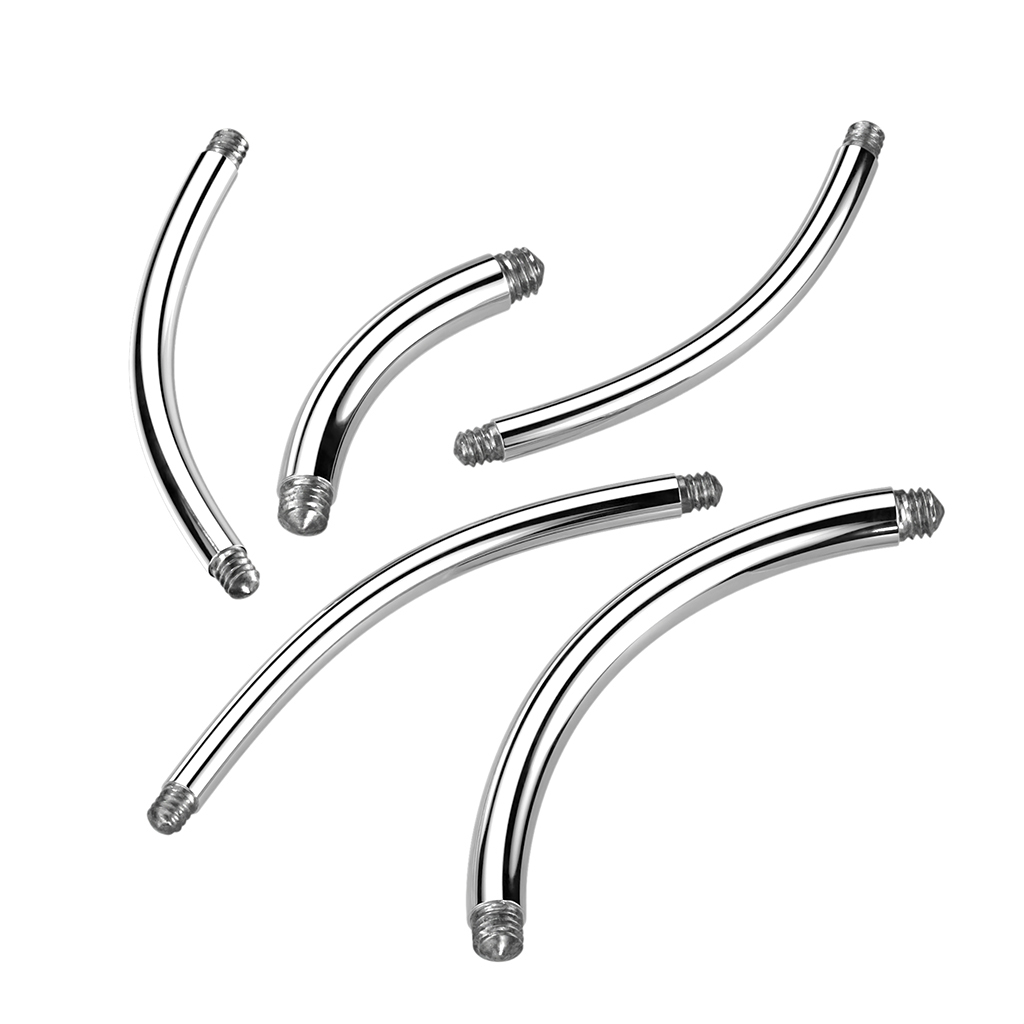 Deze gebogen staven laten zich goed gebruiken voor wenkbrauw-, oor-, of intiempiercings, maar je kan hier evengoed modellen vinden die geschikt zijn voor navelpiercings. Je hoeft enkel nog de juiste staafdikte en lengte aan te duiden in het keuzevak.