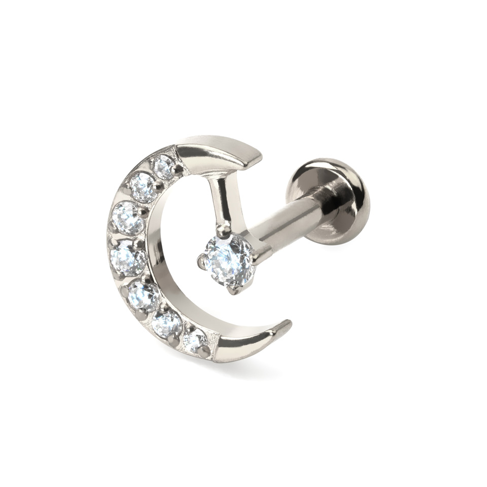 Beschikbaar in goud of zilver in verschillende lengtes, zal dit lieve, kleine maantje er geweldig uitzien in je oor of lip piercings.