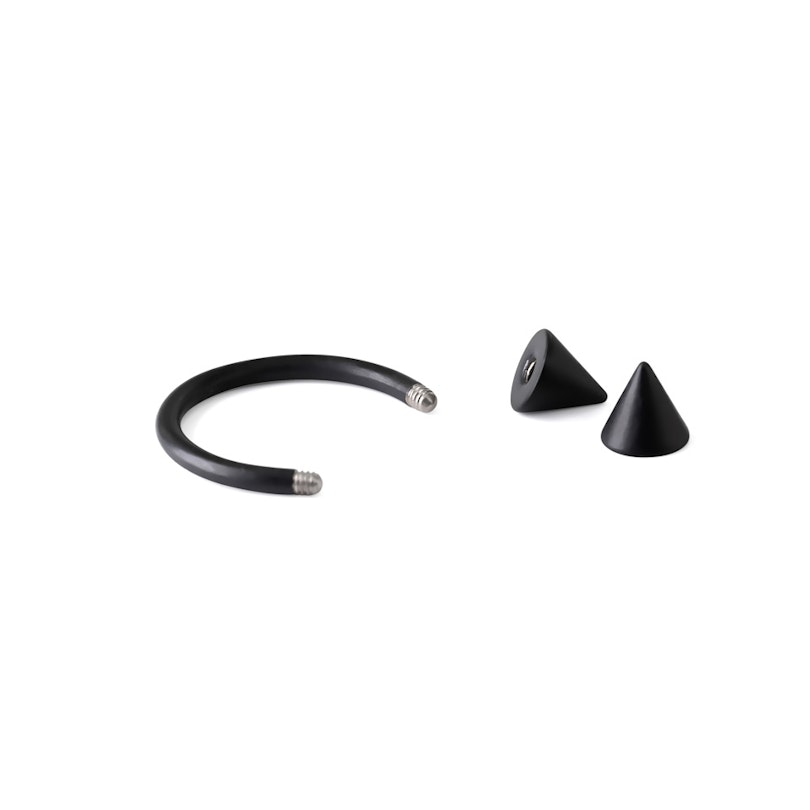 Soms wil je in de plaats van het klassieke blanke staal graag eens een andere look voor je piercings. Wel, dan ben je hier aan het juiste adres, want hier hebben we een prachtig hoefijzer voor je van chirurgisch staal dat bekleed werd met een matzwarte coating. De zwarte kleur contrasteert sterk met de natuurlijke kleur van de huid en zal zeker aandacht trekken.