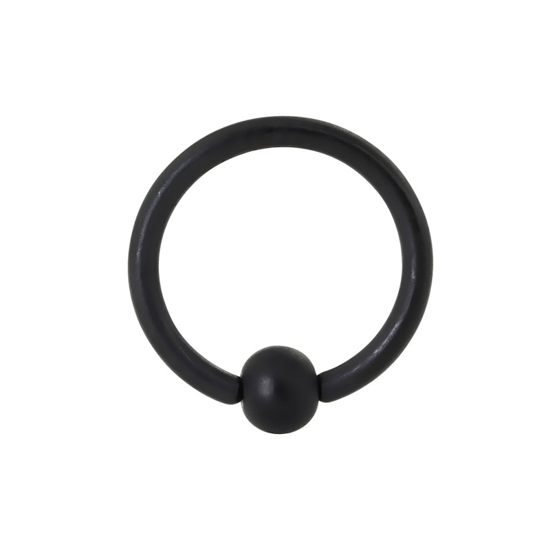 Deze captive bead ring heeft een matzwarte finish en is gemaakt van chirurgisch staal. Dit materiaal is de beste keuze voor verse piercings.