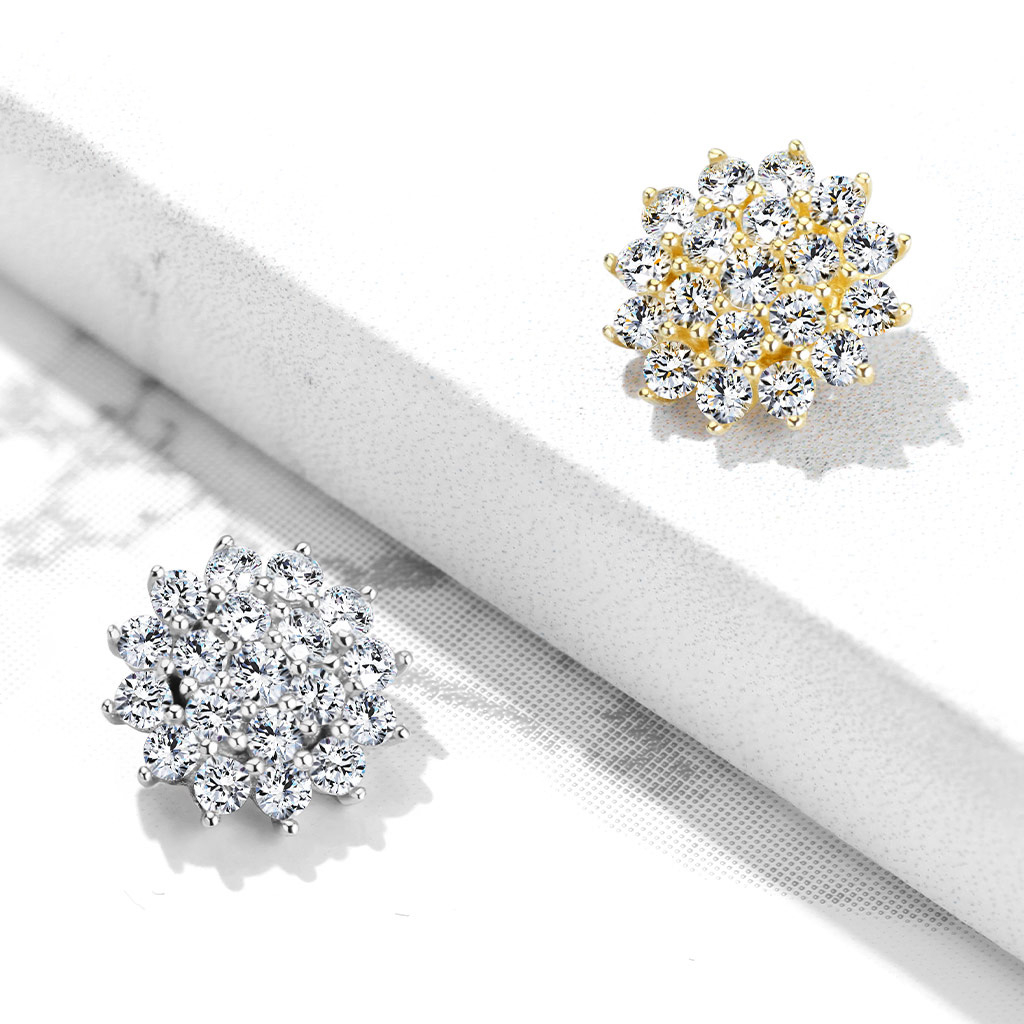 Naam: Microdermal van 14 karaats goud met bloem gemaakt van steentjes